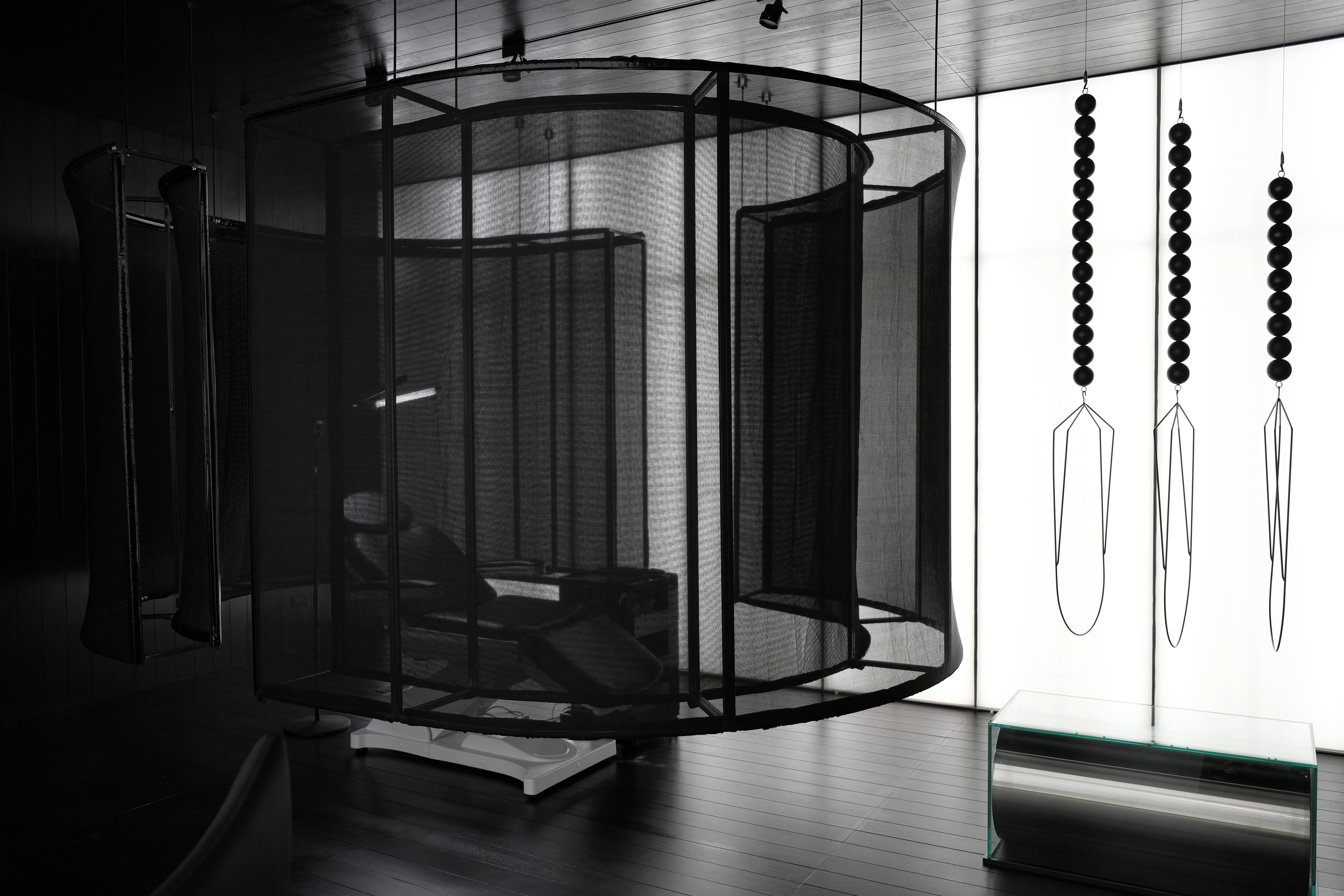 將黑色置入空間中且不斷的將黑色拆解成各種材質,